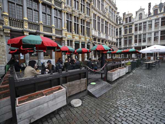 Başkent Brüksel'de salgın önlemleri kapsamında sadece açık bölümlerinde hizmet verecek olan işletmelerin teras ve bahçeleri, soğuk ve yağmurlu havaya rağmen günün ilk saatlerinden itibaren ilgi gördü.